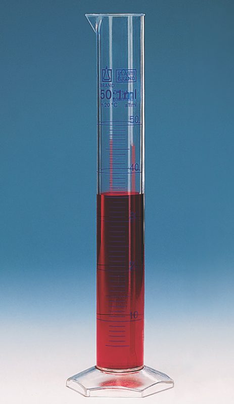 Válec odměrný PMP, třída A+, modrá graduace 50ml, vysoký