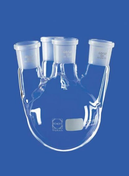 Baňka destilační, čtyřhrdlá, 1000 ml, 1x 29/32, 3x 29/32 šikmý tubus (7°)