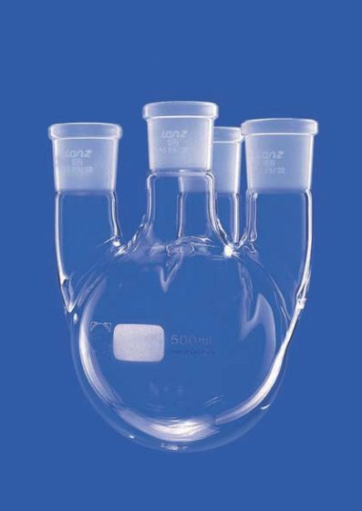 Baňka destilační, čtyřhrdlá, 6000 ml, 1x 29/32, 3x 29/32 rovnoběžný tubus