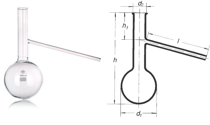 Baňka frakční s trubicí natavenou uprostřed typ 41/B, 100 ml