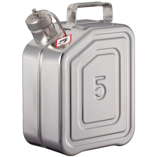 bezpečnostní kanystr z nerezové oceli AISI 316 Ti (1.4571) pro přepravu a skladování hořlavin
