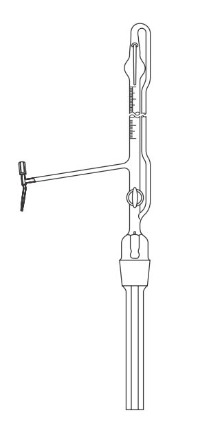 - modrá graduace, teflonový výpustný kohout svýtokovou špičkou (typ C), přepouštěcí teflonový kohout