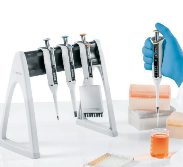 Sada složená z vybraných mechanických pipet Sartorius Tacta, lineárního stojánku a vhodných špiček.