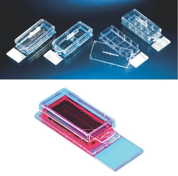 - umožňují kultivaci buněk přímo na sklíčku, preparát je pak přímo připraven pro barvení a zkoumání