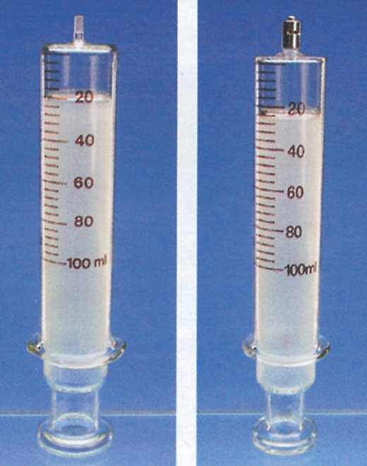 Stříkačka skleněná 100 ml, skleněný konus, bez jehly